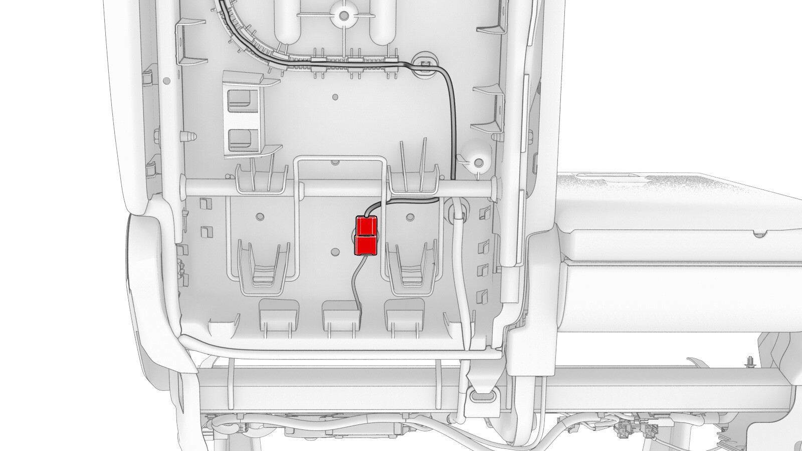 - 断开第二排左侧座椅加热器电气连接器,然后拆下将连接器固定到座椅的卡子。