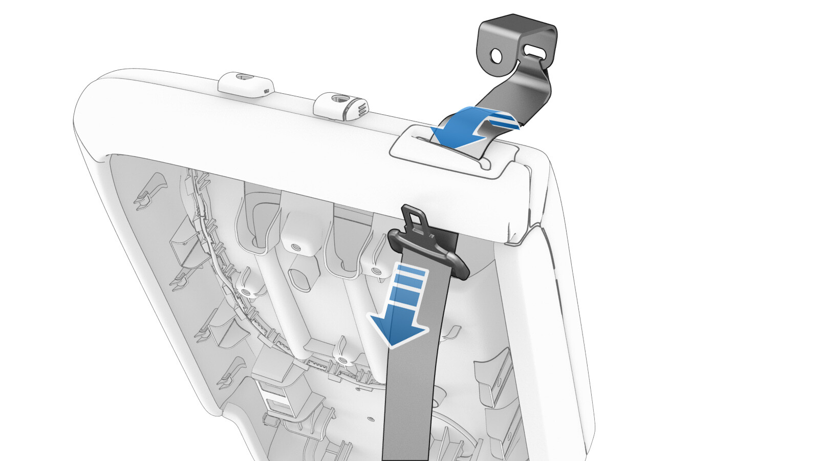 - 将中央座椅安全带卷收器穿过蒙皮。