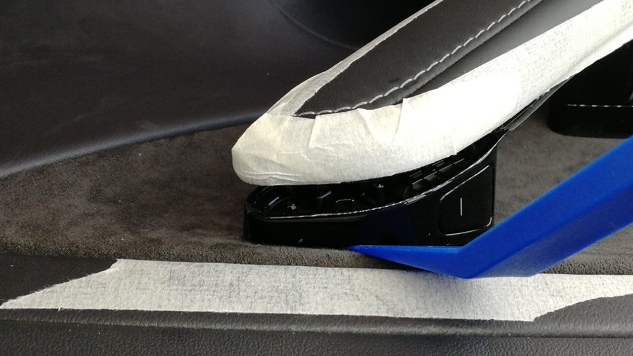 - 在作业区域的四周粘贴遮蔽胶带,以保护车门饰板。