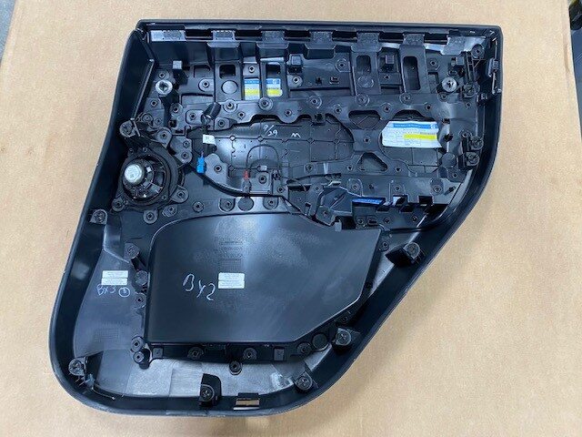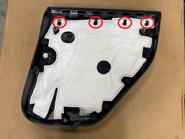 - 将 NVH 垫安装到后车门饰板上,然后用锁片 (x4) 固定该垫。