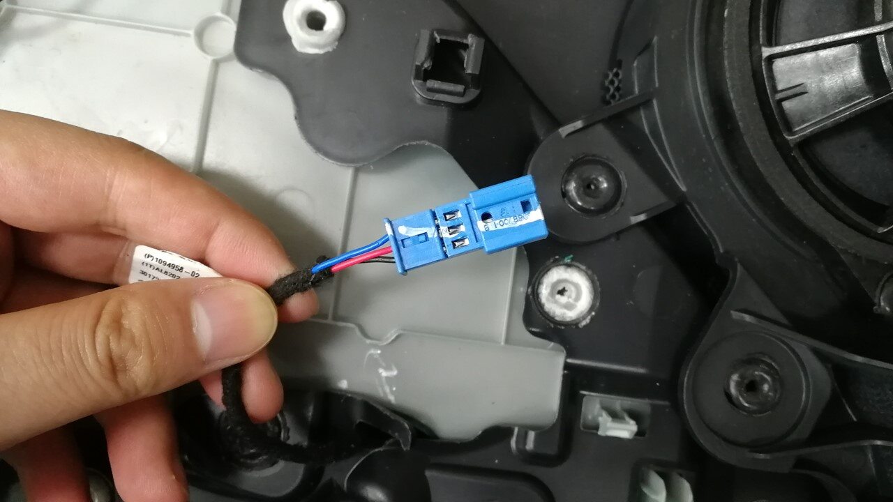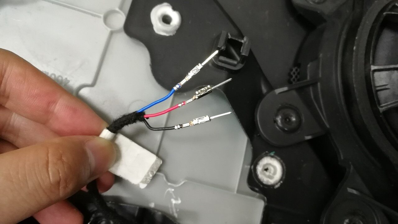注分开针脚和插头,以确保其可以通过狭窄的饰板空间。注标记针脚和电气连接器的位置。