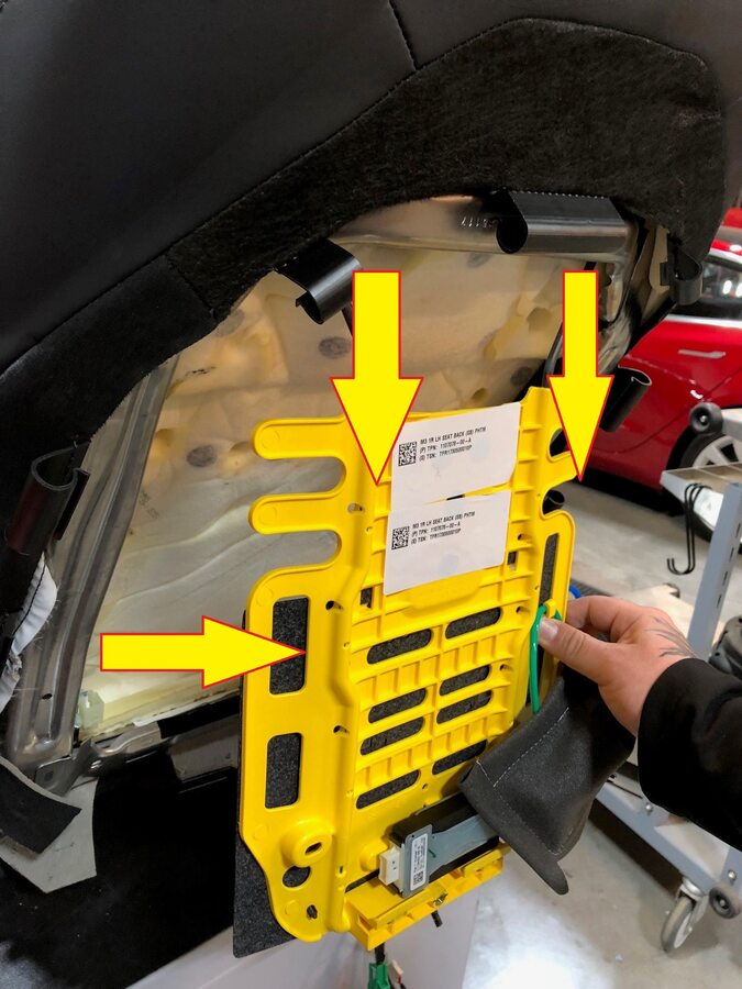 - 将副驾位座椅靠背饰板固定件安装到副驾位座椅靠背框架上。
