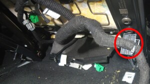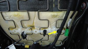 - 将左前座椅线束从驾驶室左前地毯下方拉出。