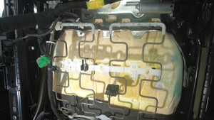 紧固将座垫加热垫连接器固定到座椅底部的卡子,然后连接连接器。