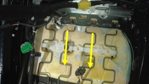 - 断开座垫加热垫连接器,然后将连接器从座椅底部分离。