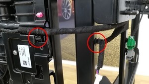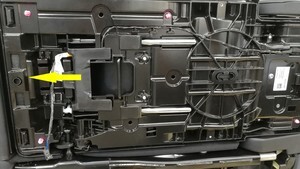 - 松开将第二排中间座椅靠背线束固定到座椅总成的夹子 (x2),然后从线束导件上松开线束,以将其从车上拆下。
