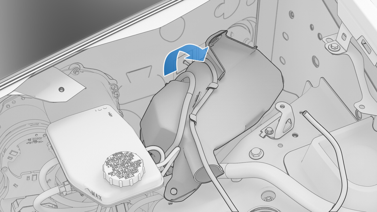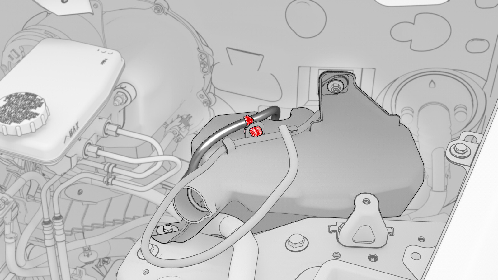 - 松开将电气线束固定到挡风玻璃清洗器储液罐的夹子。