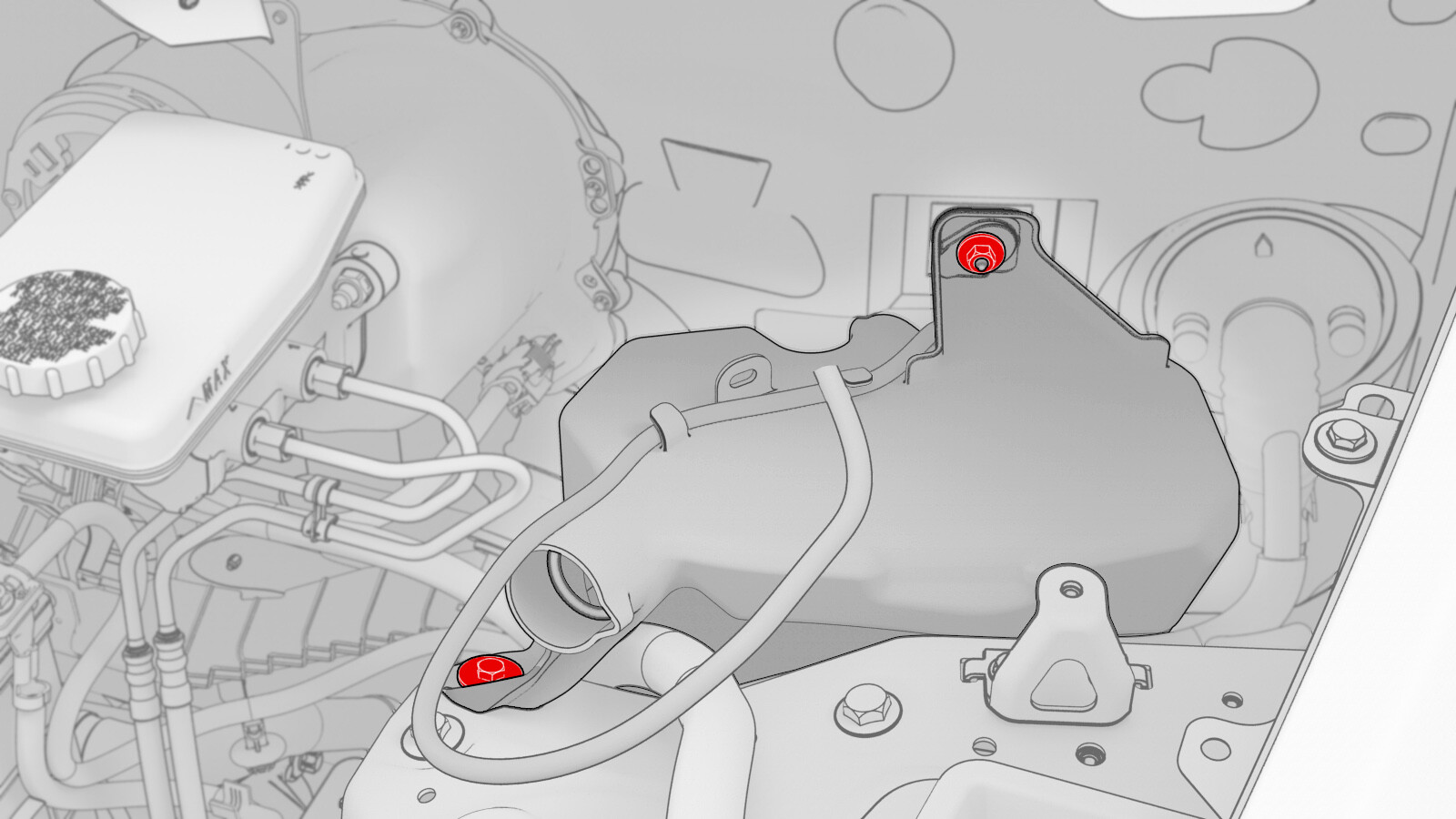 - 拧紧将电气线束固定到挡风玻璃清洗器储液罐的夹子。