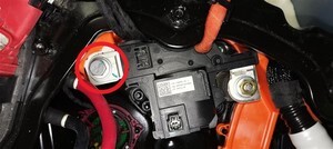 | 将负极电池组触点开关固定到高压电池仓的螺母 |
