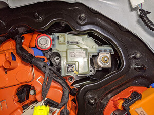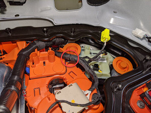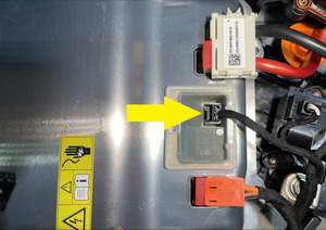- 将高压电池仓线束夹连接到正极电池组触点开关。