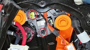 - 将高压电池仓线束连接器(2 个)从正极电池组触点开关上断开。