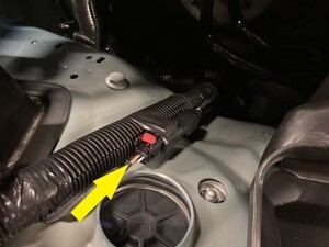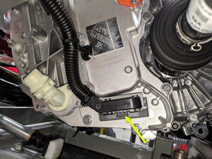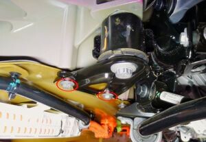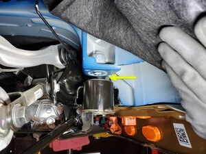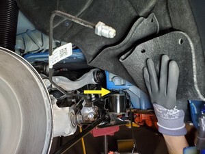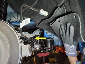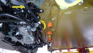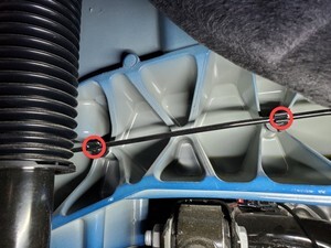 注1x spring clip, 1x clip, Rotate between subframe and battery out of vehicle