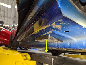 注Verify jack locations prior to lifting vehicle, ONLY place on lifting points at front and rear of rocker panels