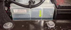 注Make sure vehicle is not in drive state, Plan is still running despite the stop message, Coolant pumps will be audible, Test lasts approximately 10 mins, Speeds can be monitored in garage under PT Thermal tab, Idle speed = ~1500 RPM, Test will vary speeds from 3500-6500 RPM and actuate valve between SERIES and PARALLEL, Putting vehicle into drive state will stop this routine, If speeds hover at 7000 RPM, that means the pumps are air locked, perform vacuum fill again, Continue to add coolant and purge until the coolant level reaches between the NOM and MAX Lines on the bottle, Select ‘X’ at top right of window to close once complete - Install coolant bottle cap
