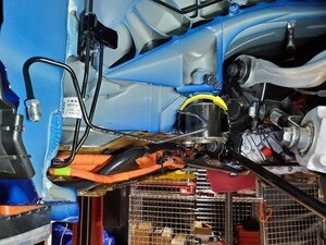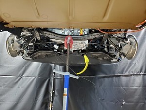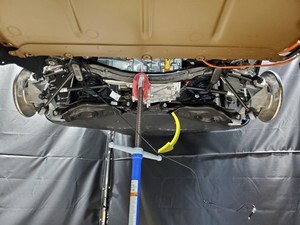 Remove large fore bolts securing rear subframe to body and lower support stand