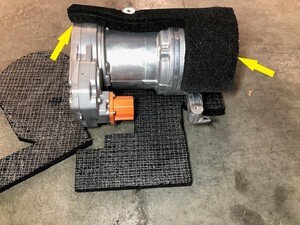 注尽可能多地拆下其余 NVH 隔音盖材料。空调压缩机上留有过多材料将导致称重不准确。