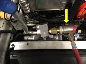 - 将空调机上的高压软管连接到高压冲洗适配器装置。