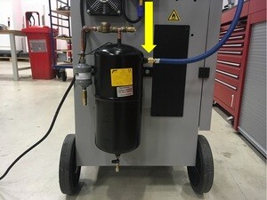 - 将空调机上的低压软管连接到过滤器快速接头。