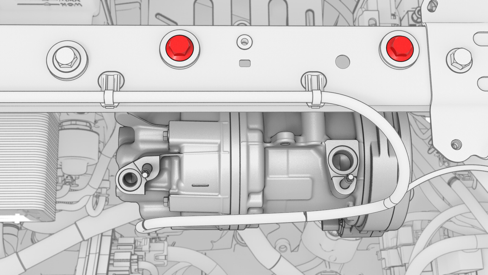 安装将高压线束支架固定到空调压缩机的螺栓。