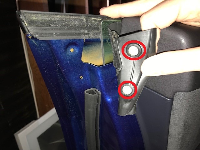 在内侧密封条和车门玻璃导槽密封条处,松开车门辅助密封条的两端。