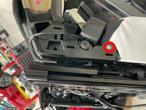 拆下将第二排 LH 后座垫底盘连接到座椅骨架的螺栓。