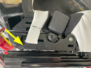 - 松开将第二排 LH 座椅系带连接到内侧内总成的钩子。